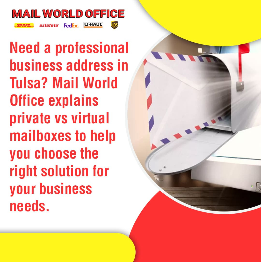Tulsa, OKMail World Office helps local businesses and individuals understand the distinct advantages of different mailbox service options available in the Tulsa metropolitan area. The company provides both private mail box services and virtual mailbox solutions to meet diverse customer needs.